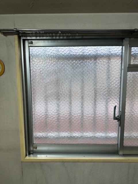 右側の大きな隙間はアルミ板をサッシの形状に合わせて加工して取り付けました